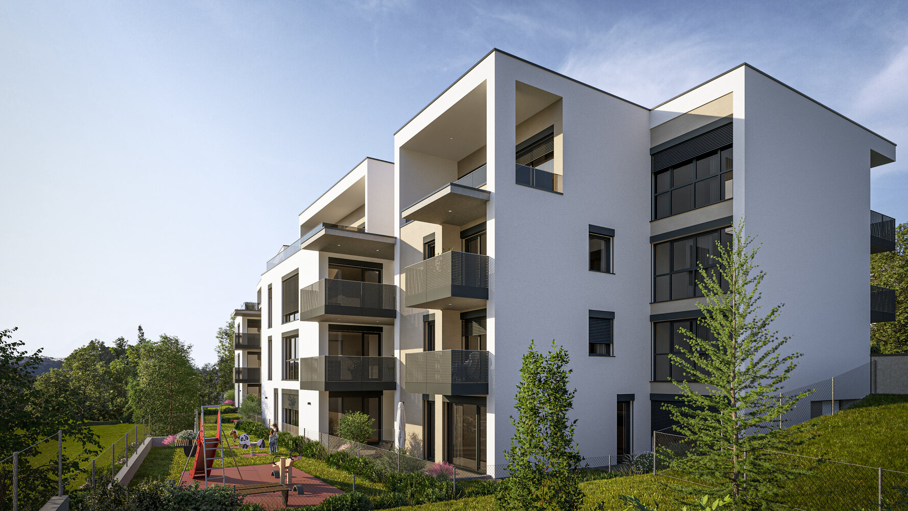 Die geplante Wohnanlage umfasst 25 Eigentumswohnungen mit Wohnflächen zwischen rund 49 und 124 Quadratmetern. Zwei architektonisch klar gestaltete Baukörper fügen sich in die gewachsene Struktur des Ortskerns ein und orientieren sich in ihrer Gestaltung an der alpinen Umgebung. Der Baubeginn für das Projekt ist für 2026 vorgesehen.